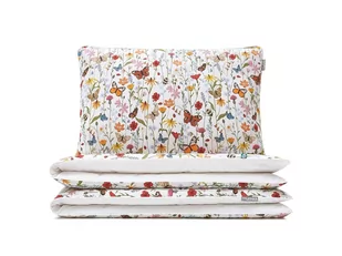 Duże pościele w motyle to 160×200 cm, 140×200 cm oraz 200×200 cm i 200×220 cm, dla dzieci to 90×120 cm oraz 100×135 cm. Będzie pasować do każdej sypialni i stworzy w niej sielski klimat. Dobrze połączy się mocnymi kolorami. W jasnych, monochromatycznych wnętrzach będzie barwnym akcentem. Idealnie dopełni ją prześcieradło musztardowe lub prześcieradło niebieskie.