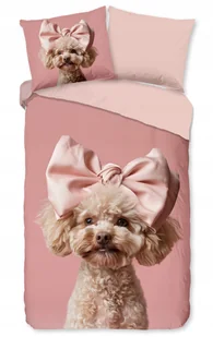Pościel piesek pudelek różowa kokarda 140x200 bawełniana dziecięca miękka