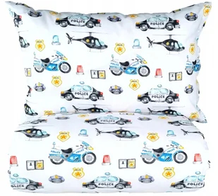 Pościel policja motor auta helikopter 160x200 bawełniana dziecięca biała