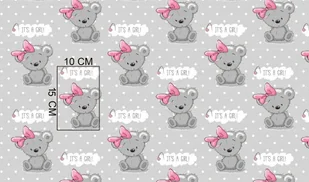 Karo Poszewka bawełniana 40x40 556K misie szara różowa Kids 24