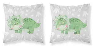 Poszewka 40x40 Triceratops zielony dinozaur szara dwustronna PSBA Mayamoo