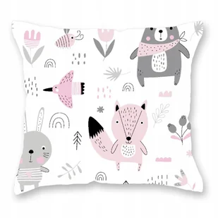 Poszewka na jaśka na poduszkę dziecięca 40X40 bawełna różowe zwierzątka
