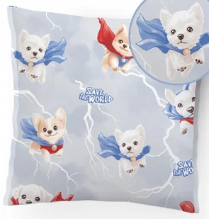 Poszewka na poduszkę Rozmiar: 40x40 cm. Wzór: Super Psiaki Niebieskie Bawełna 100% Poszewka na poduszkę o wymiarach 40x40cm. Łatwa do zdejmowania, można ją p...