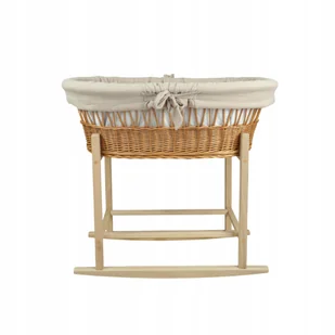 Wiklinowy kosz Mojżesza Oliwia naturalny z kołyską i pościelą muślin beżowy