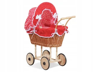 Wiklinowy wózek dla lalek wysoki z czerwoną pościelką i wyściółką Natalia n