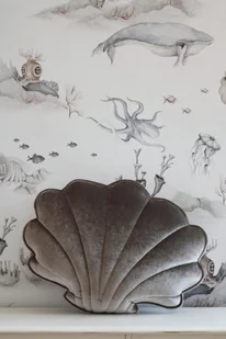 Aksamitna poduszka dekoracyjna muszla "Szara perła"