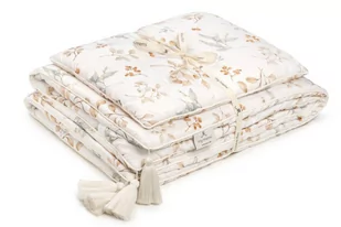 Komplet niezwykle przyjemnej w dotyku oraz lekkiej pościeli całorocznej z wypełnieniem. Pościel na stałe zszyta z antyalergicznym, oddychającym wypełnieniem, wykończona lamówką i czterema naturalnymi chwostami. Zewnętrzna strona pościeli to 100% tkanina bambusowa, która wyróżnia się wieloma prozdrowotnymi właściwościami. Przede wszystkim utrzymuje komfort cieplny, zapobiega przegrzewaniu (w ciepłe dni utrzymuje temperaturę niższą o 2 stopnie od otoczenia) oraz chroni przed promieniowaniem UV. Kolekcja Boho Nature to autorskie wzory My Memi, które powstały z inspiracji naturą.