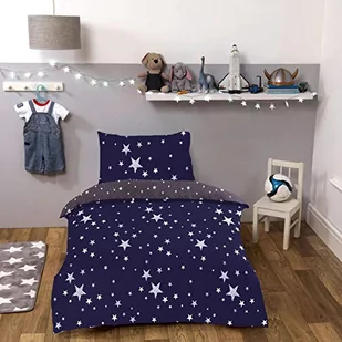 Dreamscene Astronomy Stars poszewka na kołdrę z poszewką na poduszkę dla dzieci chłopców dziewcząt dwustronna galaktyka zestaw pościeli, granatowy szary - pojedynczy