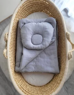 Pościel niemowlęca do gondoli wózka, kosza Mojżesza lub łóżeczka. Wykonana z bawełnianego muślinu- 100% atestowanej bawełny. Jest miła i przyjemna w dotyku. Nie podrażnia delikatnej skóry dziecka.