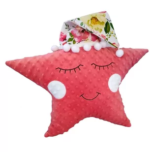 • szerokość około 49 cm • wysokość 60 cm przy rozwiniętej czapce ⭐ Kolor: pomarańczowa poduszka z białymi naszytymi polikami, czapka w roślinny wzór wykończoną białymi pomponami ⭐ Oczy i usta są wyhaftowane haftem komputerowym, wysokiej jakości nićmi, nie ma zagrożenia poprucia przy praniu czy użytkowaniu. ⭐ Poliki chmurki są z białej aplikacji nahaftowane na tkaninie. ⭐ Czapka gwiazdki jest solidnie przyszyta do całości, z tkaniny bawełnianej wykończona taśmą z pomponami. Pielęgnacja poduszki.