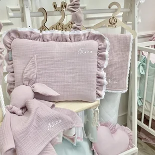 Płaska poduszka muślinowa z falbanką z haftem imiennym 8 kolorów