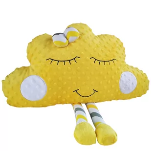 Wymiary poduszki w kształcie chmurki: • szerokość około 50 cm • wysokość 28 cm • plus około 20 cm doszytych nóg. ☁️ Kolor: żółty z nogami w żółto biały wzór ☁️ Oczy i usta są wyhaftowane haftem komputerowym, wysokiej jakości nićmi, nie ma zagrożenia poprucia przy praniu czy użytkowaniu. ☁️ Poliki chmurki są z białej aplikacji nahaftowane na tkaninie. ☁️ Nogi chmurki i kokardka są solidnie przyszyte do całości, mają taki sam wzór na materiale wykończone tasiemką z malutkimi pomponikami.