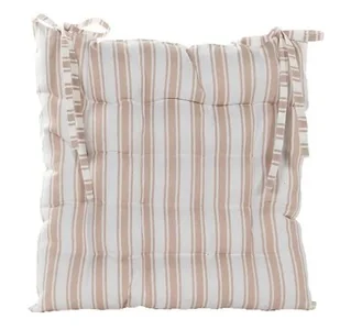 Miękka wiązana poduszka na krzesło, która jest odporna na wodę oraz na promienie słońca przez co nie blaknie. Można ją stosować na zewnątrz i wewnątrz. Jest wykonana z wysokiej jakości poliestru. Poduszka jest w kolorze kości słoniowej - białej oraz ma wzór pasków. Jest wymiarów 38x38cm.