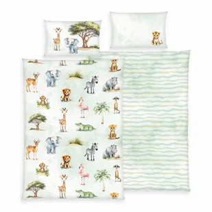 Pięknego motywu zwierząt Safari nie może zabraknąć w pokoju Państwa dzieci. Co więcej, pościel wywoła uśmiech na twarzy Państwa dziecka i jednocześnie stanie się świetnym dodatkiem do jego pokoju. Przyjemna w dotyku bawełna zagwarantuje Państwu komfortowy i spokojny sen. Pościel posiada zamknięcie hotelowe. Pościel jest dwustronna, jak pokazano na zdjęciu.