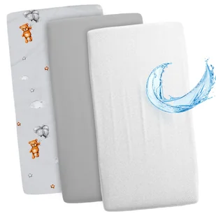 Zestaw 3 prześcieradeł z gumką do wózka dziecięcego: 83 x 50 cm - 2x prześcieradło + 1x wodoodporny ochraniacz na materac - akcesoria do łóżeczka dz..