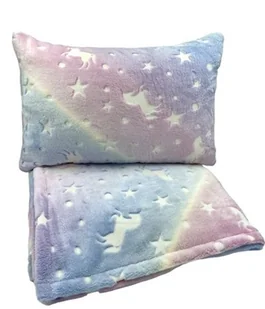130 x 155 Komplet kocyk Poduszka jednorożec świecący w ciemności