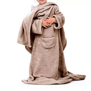 Charakterystyka: Koc z rękawami - może być używany jako miękki koc lub jako szlafrok. Umieszczona z przodu praktyczna kieszonka umożliwia przechowywanie drobnych, codziennych niezbędników. Miękki, przyjemny w dotyku materiał. Wysoka jakość wykonania.