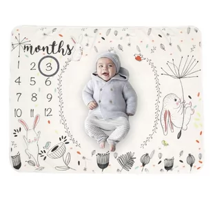 Foto kocyk dla dziecka - gotowy prezent Fotografuj maleństwo miesiąc po miesiącu, aby stworzyć niezapomnianą pamiątkę na całe życie. Patrz jak Twój maluszek rośnie i ciesz się każdą, drobną zmianą w wyglądzie i umiejętnościach dzieciątka. Starannie wykonany i ozdobiony pięknymi ilustracjami, zachwyci zarówno mamę jak i maleństwo. W zestawie ramka do oznaczania daty na kocyku. Kocyk zapakowany jest w elegancki celofan i przewiązany satynową tasiemką.