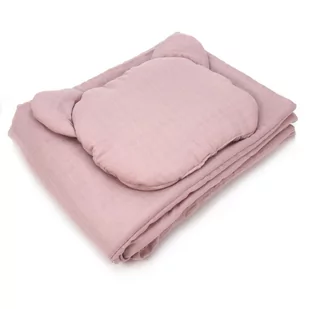 Kocyk Muślinowy 50 x 75 cm + podusia Miś 35 x 40 cm Ocieplany Kocyk Muślinowy w rozmiarze 50 x 75 cm +/- 3cm Kocyk wykonany jest z muślinu, który cechuje się niesamowitą delikatnością oraz miękkością dzięki czemu może być stosowane już od pierwszych dni życia dziecka. Główną zaletą muślinu jest super chłonność oraz przewiewność dzięki czemu idealnie regulują temperaturę dziecka. W środku wypełniony jest antyalergiczną silikonową włókniną. Podusia Miś płaska w rozmiarze 30 x 40 cm +/- 3 cm Podusia wykonana jest z przyjemnego i delikatnego w dotyku Muślinu. Wypełniona jest antyalergiczną silikonową włókniną.