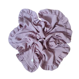 Koc muślinowy z falbanką czterowarstwowy 110x85cm „brudny róż”