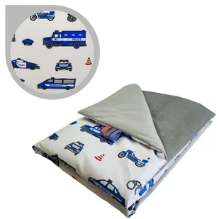 Kocyk Dziecięcy 75x100 Letni Policja Biała/Szary Bawełna/Velvet Polski Producent