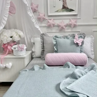 LEKKA NARZUTA 90x180cm WAFELKOWA EUKALIPTUSOWA Z FALBANKĄ