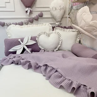 LEKKA NARZUTA 90x180cm WAFELKOWA LAWENDOWA Z FALBANKĄ