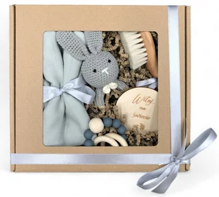 Prezent dla przyszłej mamy na narodziny dziecka w eko pudełku, szary zestaw