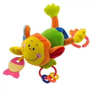Zabawka Małpka z grzechotką zielona. Ta miękka zabawka pomoże rozwinąć dziecku zmysł dotyku, wzroku oraz słuchu. Twoje dziecko z pewnością polubi interesujące kolory, różne materiały oraz dźwięki. Przedział wiekowy: 0+ Rozmiar zabawki: 29 x 20 cm Opakowanie: 30 x 22 x 9 cm