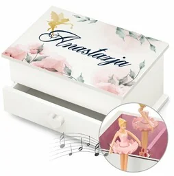 Ta wygrywa utwór "Dla Elizy" . Pozytywka posiada klasyczny mechanizm, który wymaga jedynie ręcznego nakręcenia, aby móc wsłuchiwać się w piękną i przepełnioną spokojem melodię. W trakcie grania utworu, mając w tle praktyczne lusterko , porusza się figurka baletnicy, obracając się niczym prawdziwa tancerka na scenie. Wybierz projekt dedykacji. Dopasuj nadruk z dedykacją , dołączając niezwykłe zdjęcie dziewczynki i stwórz spersonalizowany prezent dla bliskiej kobiety na zbliżającą się okazję .