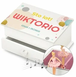 Personalizowana szkatułka z pozytywką i szufladką na urodziny Wybieracie upominek dla dziewczynki na urodziny ? Zbliża się roczek Waszej siostry? A może szukasz niespodzianki dla przyjaciółki na osiemnastkę ? Poszukujesz czegoś dla kogoś, kto posiada bogatą kolekcję biżuterii? Spersonalizowana szkatułka z pozytywką to idealny upominek dla kobiety. Biała szkatułka ma szufladkę z otwierającą gałką w kształcie serca. Przechować w niej można cenną biżuterię, czyli: kolczyki, naszyjniki, łańcuszki, bransoletki i pierścionki. Kuferek z szufladką wzbogacony jest o pozytywkę.