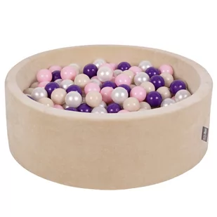 1186 KiddyMoon Suchy basen okrągły VELVET z piłeczkami 7cm beż piasku: pastelowy beż-pudrowy róż-perła-fiolet 90x30cm/200piłek Zabawka basen piankowy