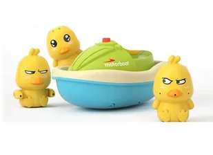 Uwagi: Zabawka przeznaczona dla dzieci powyżej 3 roku życia. Zaleca się nadzór dorosłych podczas zabawy dziecka z zabawką wodną na baterie. Pakiet Zawiera: 1 x Łódka/Skuter wodny (brak baterii AAA) 3 x Figurki aktywnych kaczuszek