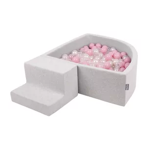 KiddyMoon piankowy plac zabaw ppzp-tr30d-122 z piłeczkami jasnoszary: pudrowy róż-perła-transparent basen 200/schodek zabawka plac zabaw