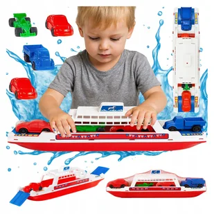 PRZEPIĘKNA ŁÓDŹ W WYRAŹNYCH KOLORACH. ZABAWKA W ZESTAWIE Z AUTAMI. DOSKONAŁA ZARÓWNO PODCZAS ZABAW W KĄPIELI JAKI I POZA KĄPIELĄ. Idealna zabawka dla najmłodszych, świetnie sprawdzi się podczas kąpieli w wannie, basenie czy nawet zabawy na plaży. WYMIARY ŁODZI: