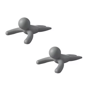 Komplet 2 stoperów do drzwi w kształcie zabawnego ludzika Buddy. Wykonany z szarego kauczuku. Ma właściwości antypoślizgowe. Nie rysuje podłogi, nie trzeba go montować. Łatwy do czyszczenia.
