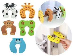 Zabezpieczenie na drzwi odbojniki do drzwi stoper blokada zabezpieczenie Piankowe zabezpieczenia do drzwi to doskonały pomysł aby zapewnić bezpieczeństwo swojemu dziecku lub zwierzakowi i chronić je przed przytrzaśnięciem paluszków lub łapek w drzwiach. To zabezpieczenie na drzwi w kształcie małpki, żyrafki, krówki, foczki lub motylka będzie idealnym rozwiązaniem. Specyfikacja: Zestaw: 5 sztuk Materiał: pianka, tworzywo sztuczne Wymiary: