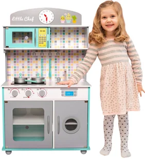 Drewniana kuchnia, akcesoria do gotowania kolor niebieski