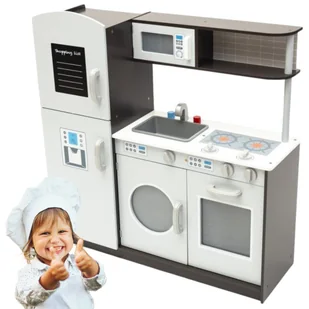 Drewniana kuchnia w kolorze białym i tablicą do pisania
