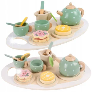 Drewniany zestaw do herbatki dla dzieci solidny serwis do zabawy filiżanki