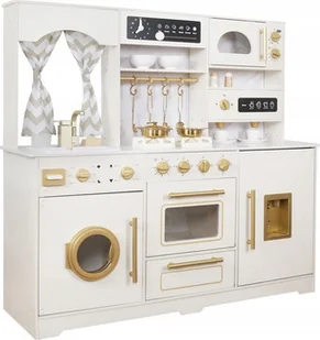 Duża Kuchnia drewniana Styl Glamour Złote dodatki Światło + dźwięk ZA5270