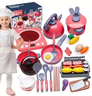 Zabawka zapakowana w ładne kolorowe pudełko. Idealnie nadaje się na prezent ! ⭐ZESTAW ZAWIERA 40 ELEMENTÓW: Czajnik. Grill i kuchnię indykcyjną. Szybkowar. Garnek z przykrywką. Patelnię. Zestaw łyżek, szpachelek.