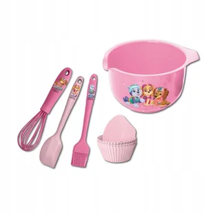 Dziecięcy zestaw do pieczenia 8 elementów Psi Patrol różowy Zestaw zawiera: 1x miska, 1x trzepaczka,. 1x skrobaczka do ciasta, 1x pędzelek 4x foremka Projekt przyjazny dzieciom: Kolorowy i atrakcyjny, z motywami PSIEGO PATROLU. Materiały wysokiej jakości: