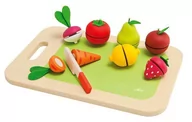 12 elementów - elementy do krojenia i łączenia przy pomocy rzepu - materiał: drewno - zalecenia wiekowe: od 2. roku życia Uwaga: Zdjęcie służy jedynie celom poglądowym i pokazuje produkt wraz z opakowaniem. Ryzyko uduszenia małymi elementami.