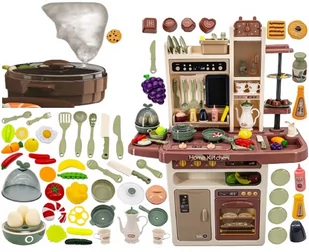 Kuchnia pomoże Ci nauczyć Twoje dziecko obowiązkowości, porządku, czystości i dbania o potrzeby (żołądki) domowników. ⭐️ Pora na coś pysznego! Zestaw kuchenny z piekarnikiem, kranem i lodówką zawiera niemal wszystko, co jest niezbędne do przyrządzenia doskonałych posiłków i słodkości. Zestaw kuchenny na pewno spodoba się zarówno dziewczynkom, jak i chłopcom lubiącym eksperymentować w kuchni. Zanim dopuścisz swoją małą pociechę do pomocy w prawdziwej kuchni, naucz ją podstaw z zabawkową kuchnią. Pyszna zabawa gwarantowana! ⭐️ Już cieknie Ci ślinka? Kuchnia posiada płytę gazową imitującą parę wodną unoszącą się z gotowanych potraw! ⭐️ Wypieki pierwsza klasa Prawdziwym rarytasem jest piekarnik, w którym można upiec ciasta lub podtrzymać temperaturę już ugotowanych potraw :