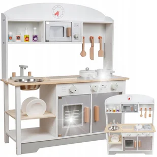 KUCHNIA DREWNIANA DLA DZIECI NOWOCZESNA solidna i duża + przybory kuchenne ✅ Zaprezentuj swojemu dziecku fascynujący świat kulinarny z naszą Kuchnią Drewnian...