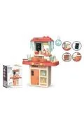 Zestaw kuchenny składający się z wielu elementów to nie tylko zabawka, ale pełna symulacja prawdziwej kuchni, dostarczająca maluchom niezapomnianych doświadczeń kulinarnych i rozwijająca ich zdolności zmysłowe. Ten kompletny zestaw zawiera artykuły spożywcze, naczynia, sztućce oraz wiele innych detali, które przenoszą dziecięcą zabawę do zupełnie nowego wymiaru. Jednym z wyróżniających się elementów jest funkcja efektów świetlnych oraz dźwiękowych, które dodają realizmu i atrakcyjności zabawie. Dzięki temu, gdy maluchy gotują, smażą czy serwują potrawy, mogą doświadczać różnorodnych dźwięków i świateł, co sprawia, że zabawa staje się jeszcze bardziej angażująca i realistyczna. Niezwykłym dodatkiem do tej kuchni jest możliwość korzystania z kranu, z którego może płynąć woda.