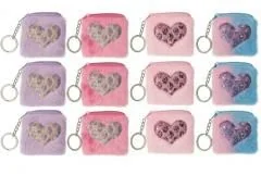 Portfel brelok MIX. Dodaj odrobinę uroku do swojej kolekcji z naszymi zachwycającymi portfelikami-breloczkami! Te małe, ale funkcjonalne akcesoria zostały zaprojektowane z myślą o stylu i wygodzie Każdy portfelik ma kształt serca, jest pokryty miękkim, puszystym futerkiem i ozdobiony brokatowym. . .