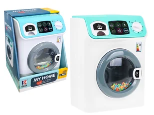 ZABAWKOWA MINI PRALKA Zabawkowa Pralka z funkcja obrotu bębna to wspaniałe uzupełnienie sprzętów AGD małej pociechy. Zabawka świetnie imituje działanie prawdziwego sprzętu gospodarstwa domowego. Aby uruchomić zabawkę należy nacisnąć czerwony przycisk na panelu dotykowym i wybrać program. Następnie należy nacisnąć przycisk PLAY, a pralka się uruchomi, wyda dźwięk wlewania wody i bęben zacznie się kręcić. Dodatkowym atutem zabawki jest otwierany bęben pralki oraz wysuwana szuflada na proszek.