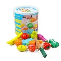 Urwiskowo, drewniane warzywa i owoce do krojenia wiaderko
